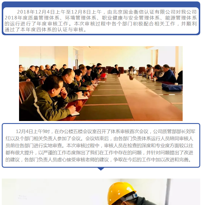 新聞?wù)?鑫匯公司順利通過2018年度四體系認證審核