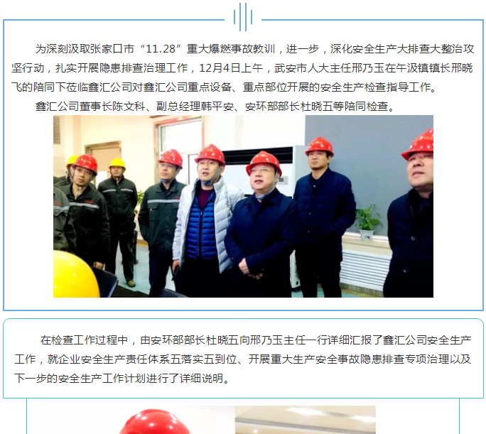 新聞?wù)?武安市人大主任邢乃玉蒞臨鑫匯公司進(jìn)行安全檢查指導(dǎo)工作