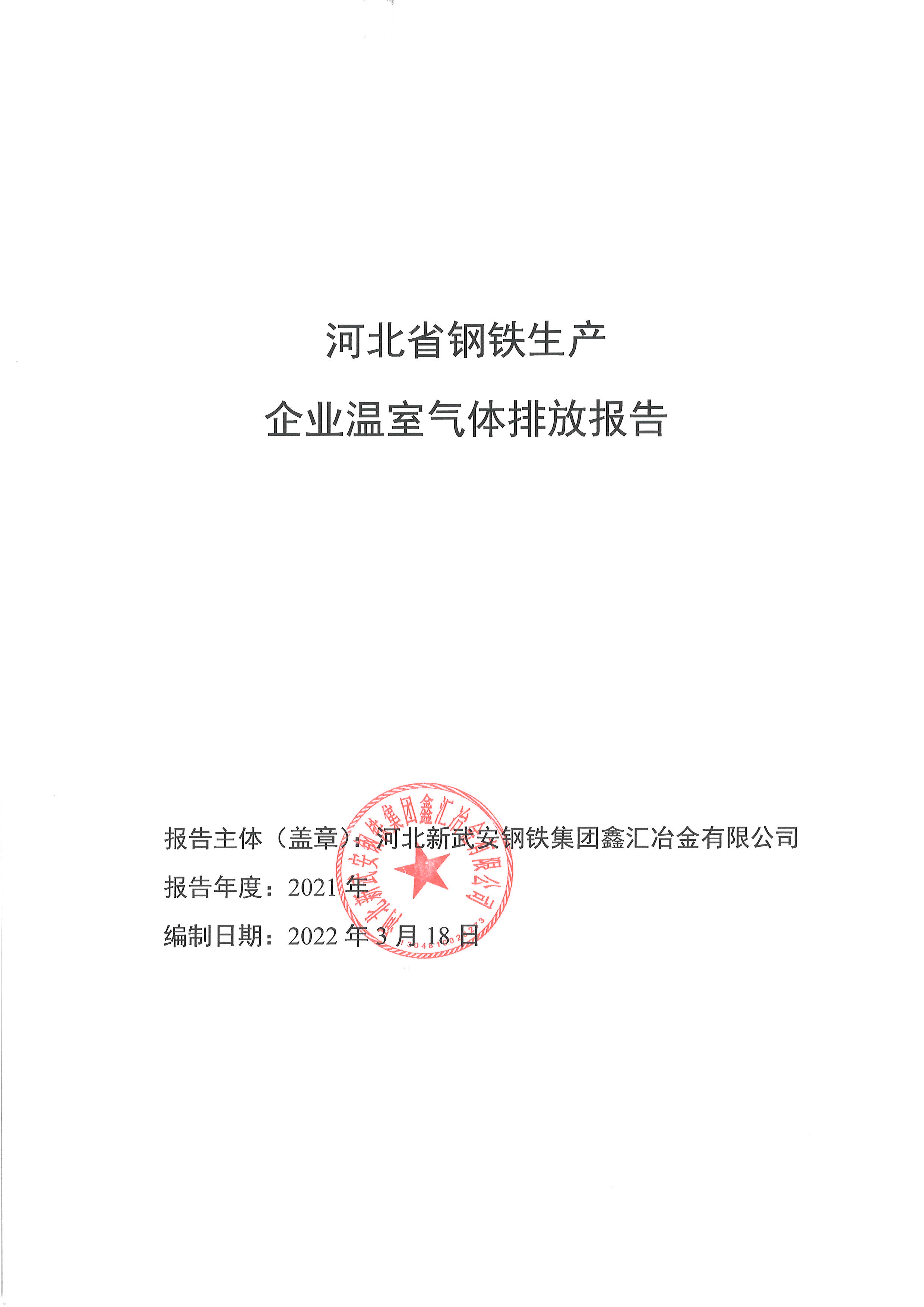2021年河北新武安鋼鐵集團(tuán)鑫匯冶金有限公司碳排放報(bào)告