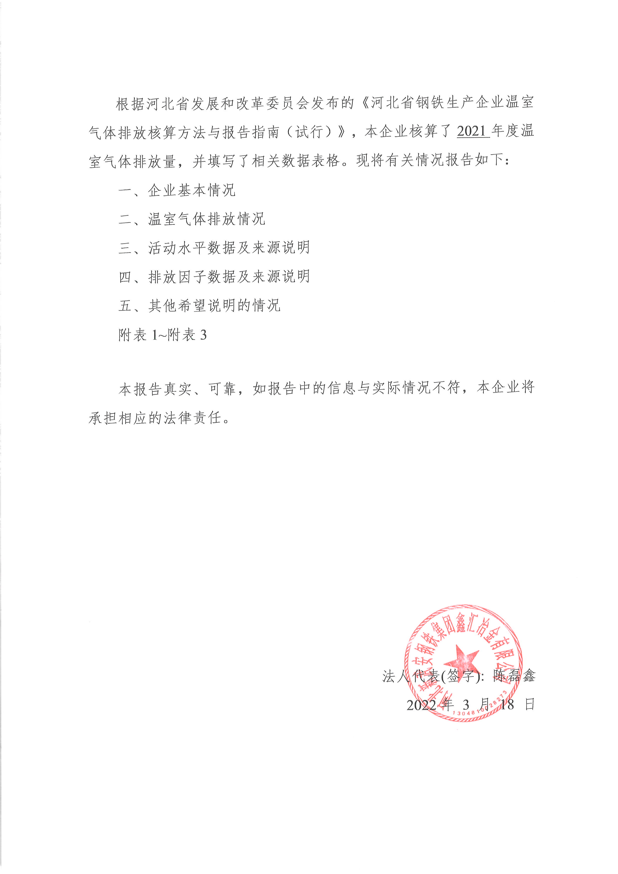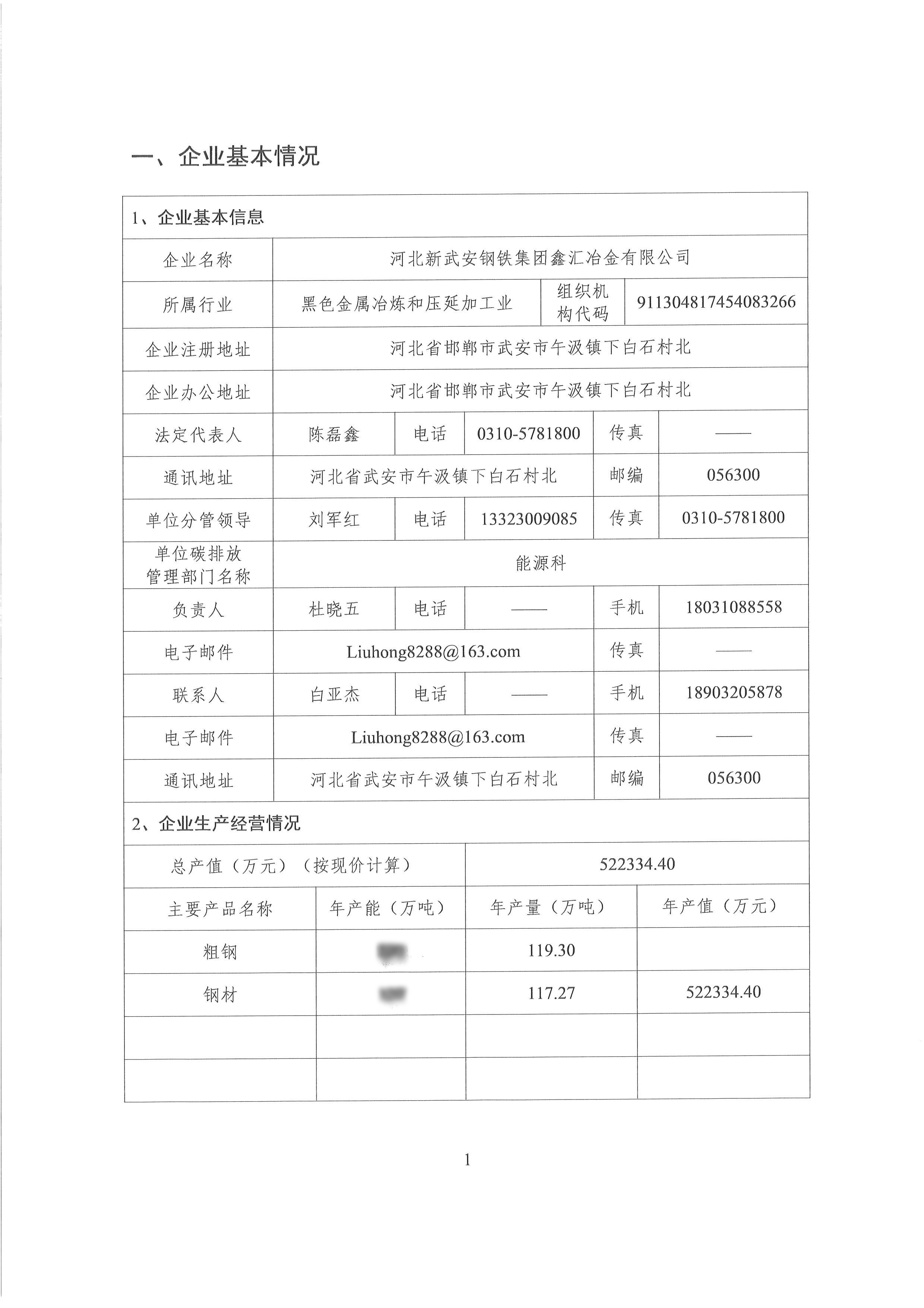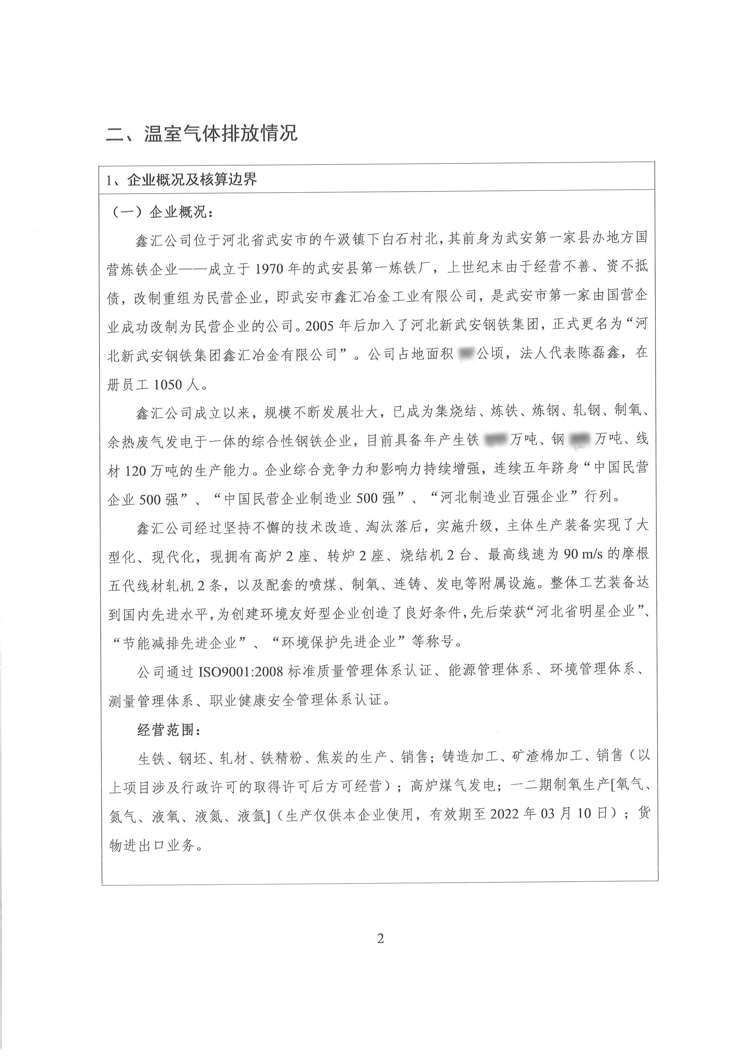 2022年河北新武安鋼鐵集團(tuán)鑫匯冶金有限公司碳排放報(bào)告