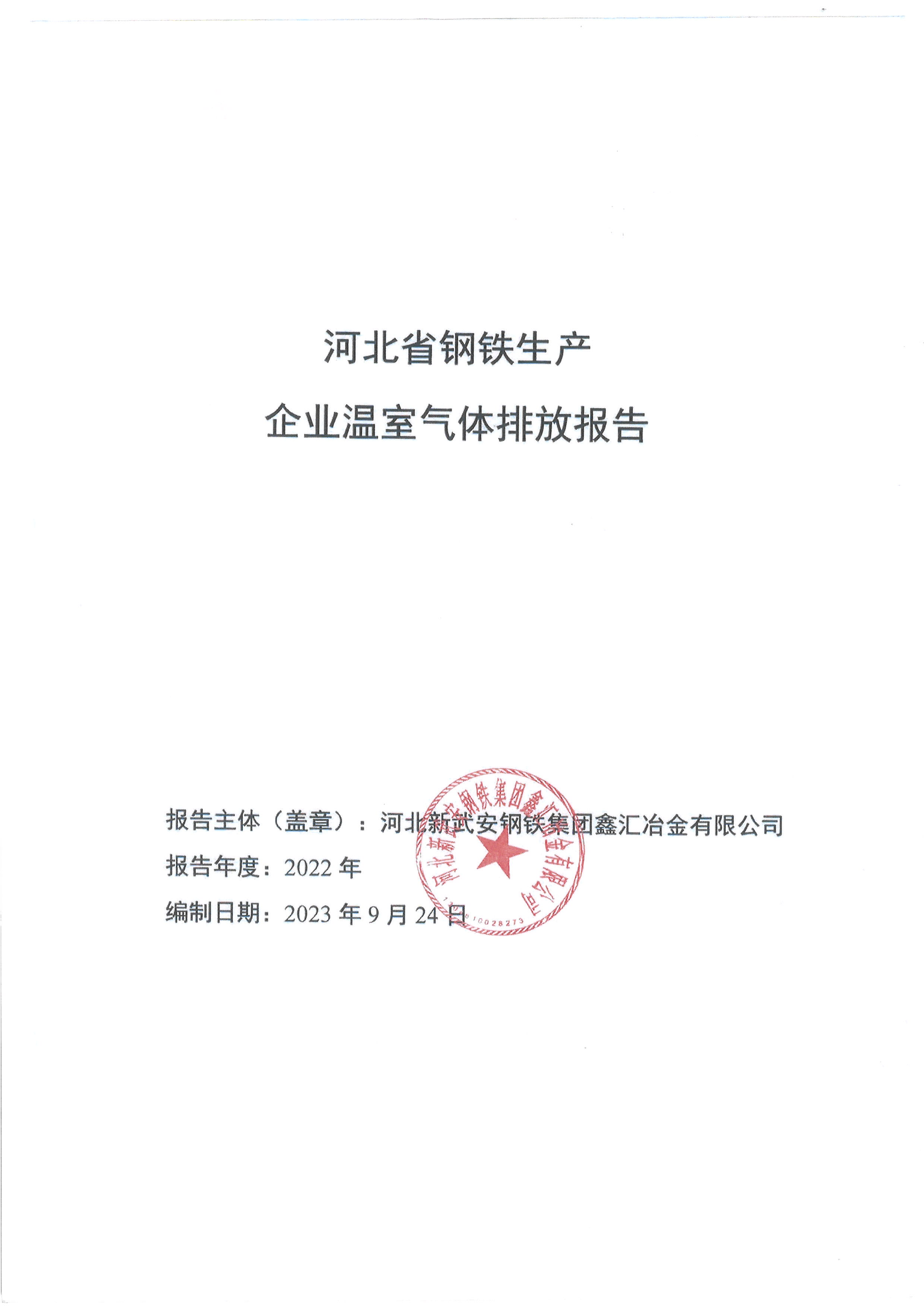 2023年河北新武安鋼鐵集團(tuán)鑫匯冶金有限公司碳排放報告