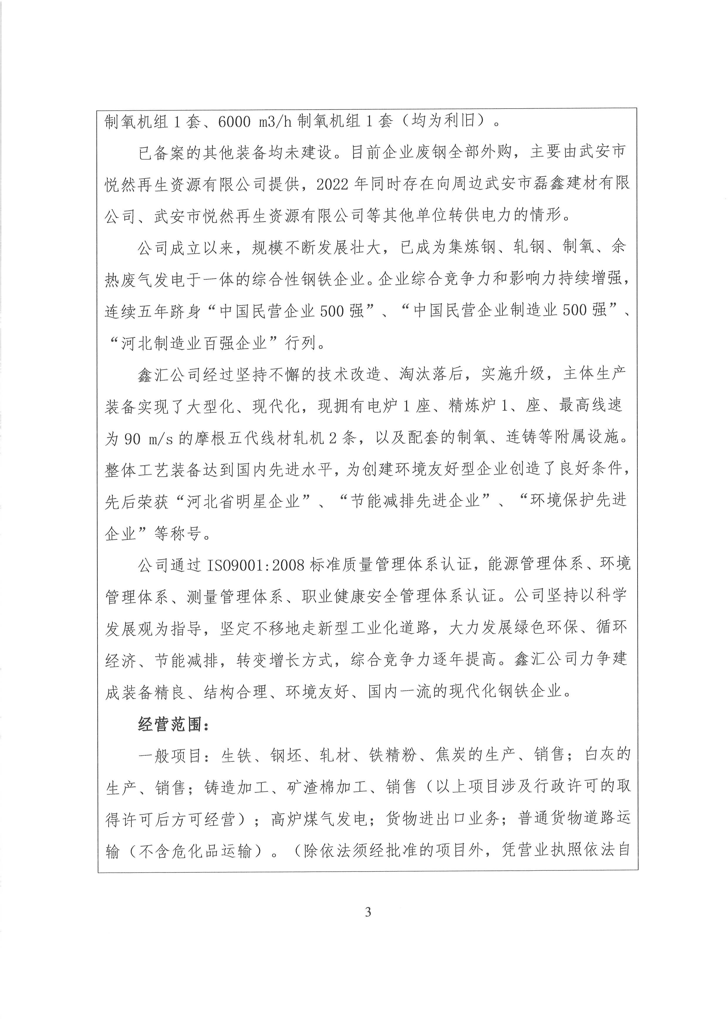 2022年河北新武安鋼鐵集團(tuán)鑫匯冶金有限公司碳排放報告