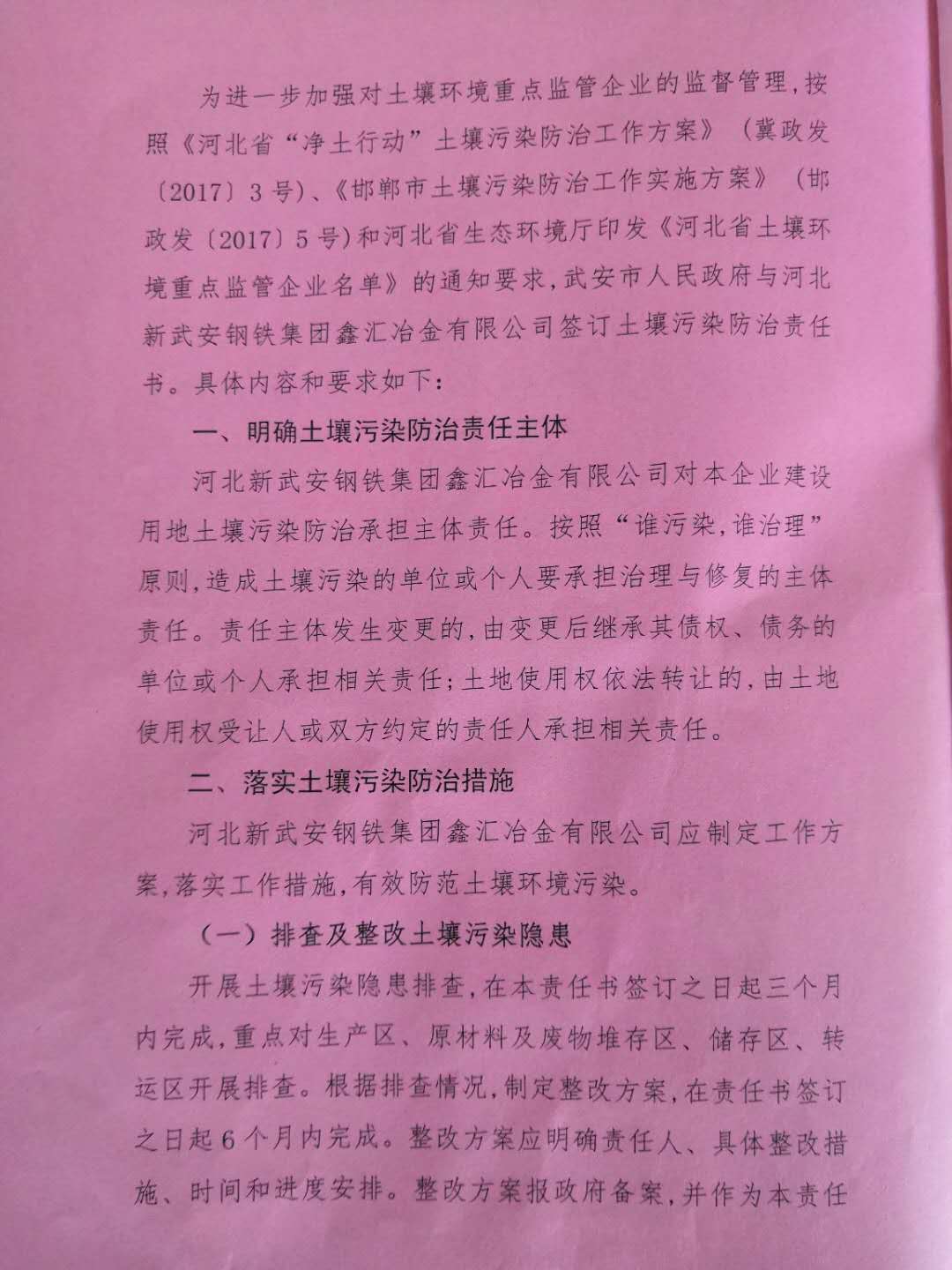 武安市人民政府土壤環(huán)境重點(diǎn)監(jiān)管企業(yè)污染防治責(zé)任書
